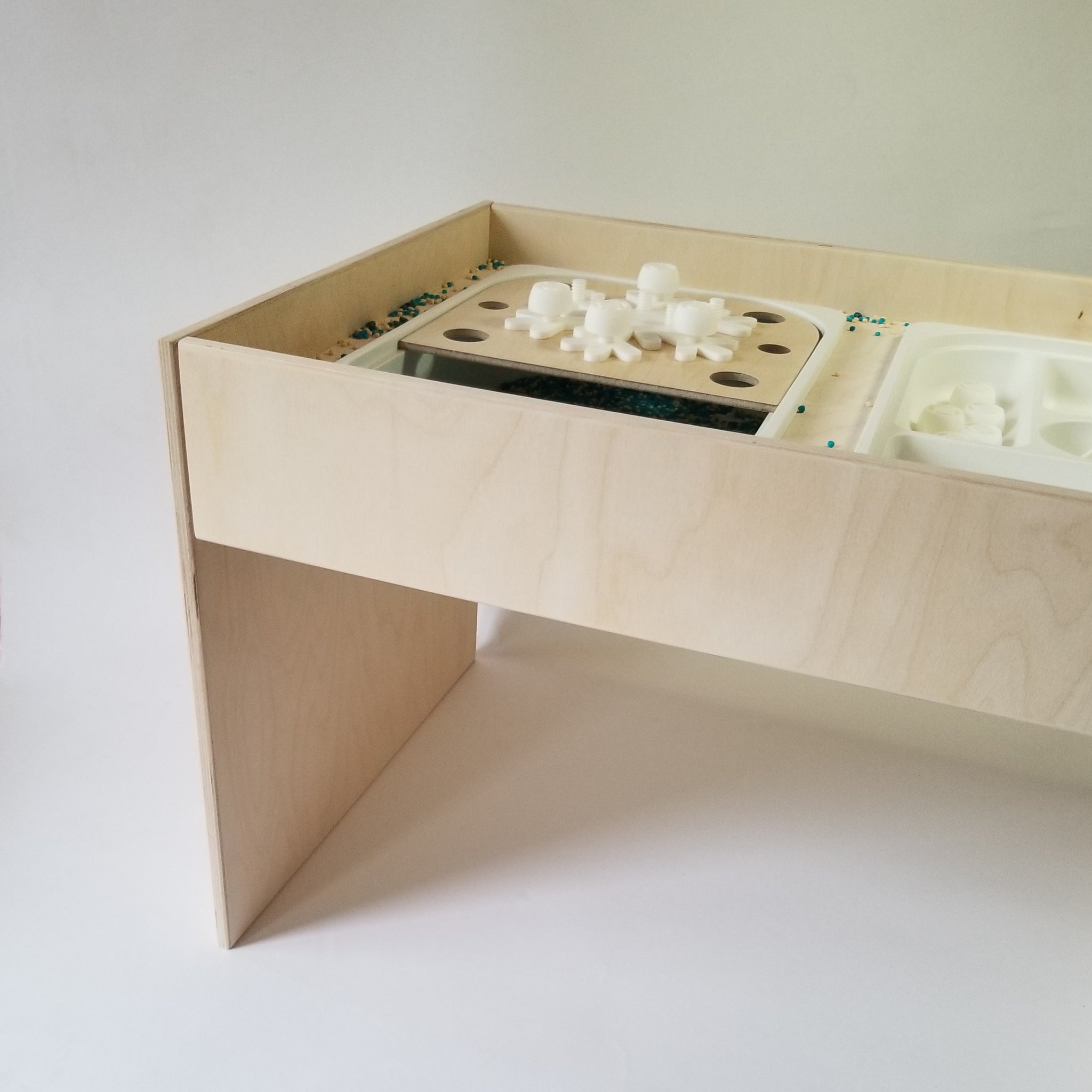 Table conçue pour réduire les dégâts lors des activités sensorielles.